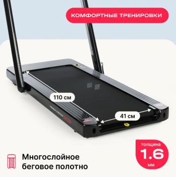 ключ безопасности, плоское складывание, съемный поручень для работы в режиме беговой панели, пульт управления, система лёкгого смазывания бегового полотна |